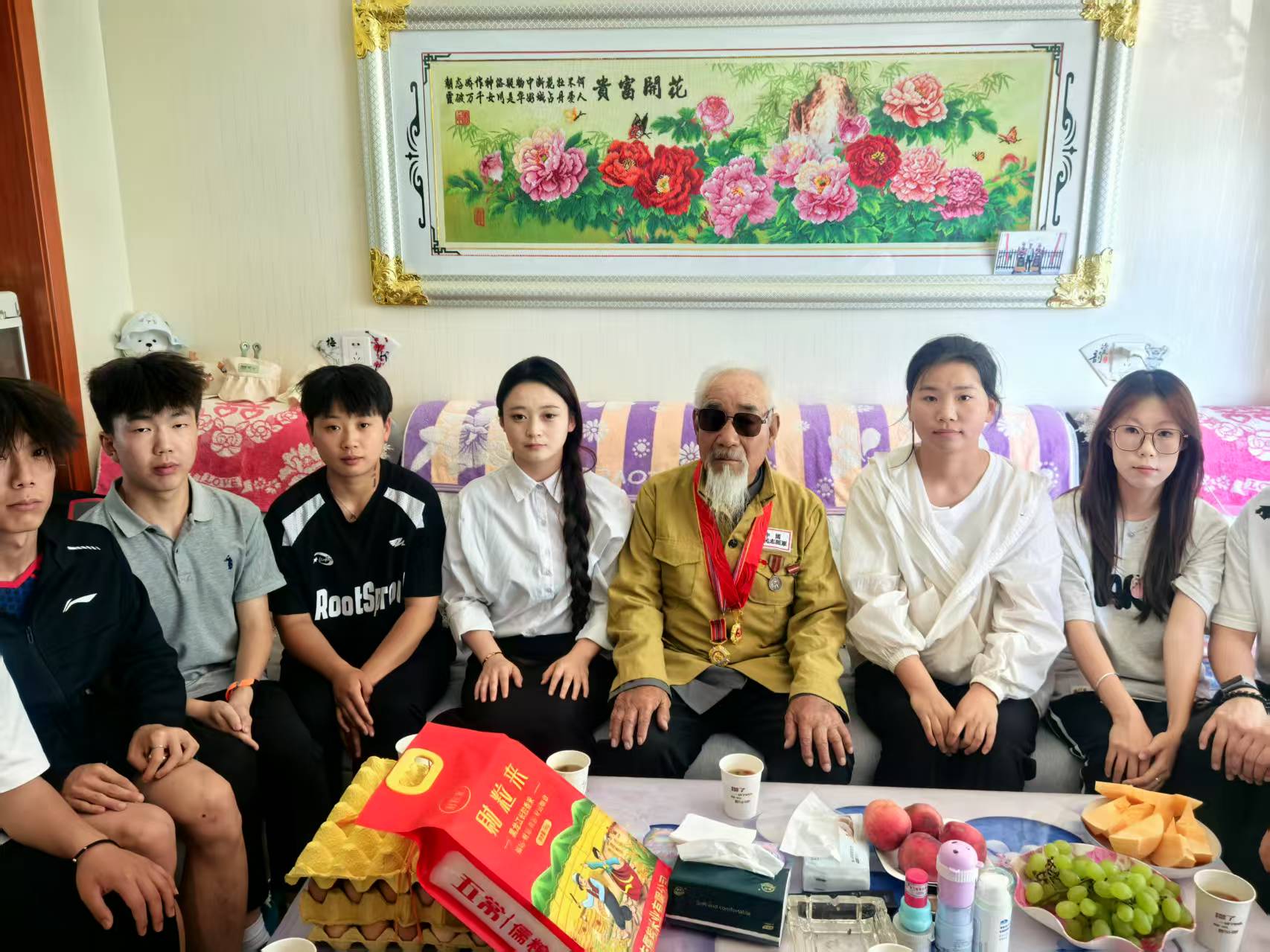 現(xiàn)居住于康寧新村八組、已93歲高齡的張克錄爺爺是參加過(guò)抗美援朝的退役老英雄。9月25日,堅(jiān)持駐村4年的靳東生老師與學(xué)?!八{(lán)天愛(ài)心協(xié)會(huì)”指導(dǎo)教師、青年大學(xué)生,帶著學(xué)校的牽掛、問(wèn)候與崇敬,一起到張克錄爺爺家中,為老人送上關(guān)愛(ài)祝福,開(kāi)展了一場(chǎng)“聆聽(tīng)英雄故事、傳承紅色基因”的特別走訪(fǎng)、慰問(wèn)活動(dòng)。張克錄爺爺精神矍鑠,身著掛有勛章的志愿軍軍裝,向師生們講述當(dāng)年志愿軍戰(zhàn)士冒著凜冽寒風(fēng)跨過(guò)鴨綠江,爬冰臥雪英勇戰(zhàn)斗的生動(dòng)事跡;驚心動(dòng)魄的戰(zhàn)斗故事,在老人樸實(shí)無(wú)華的語(yǔ)言中顯得格外感人,在場(chǎng)師生仿佛穿越時(shí)空,親眼目睹了志愿軍戰(zhàn)士們用血肉之軀筑起的鋼鐵長(zhǎng)城;說(shuō)到動(dòng)情處,老人和師生們的眼眶已經(jīng)濕潤(rùn),師生心靈受到了深刻洗禮、愛(ài)國(guó)情懷得到了高度升華。