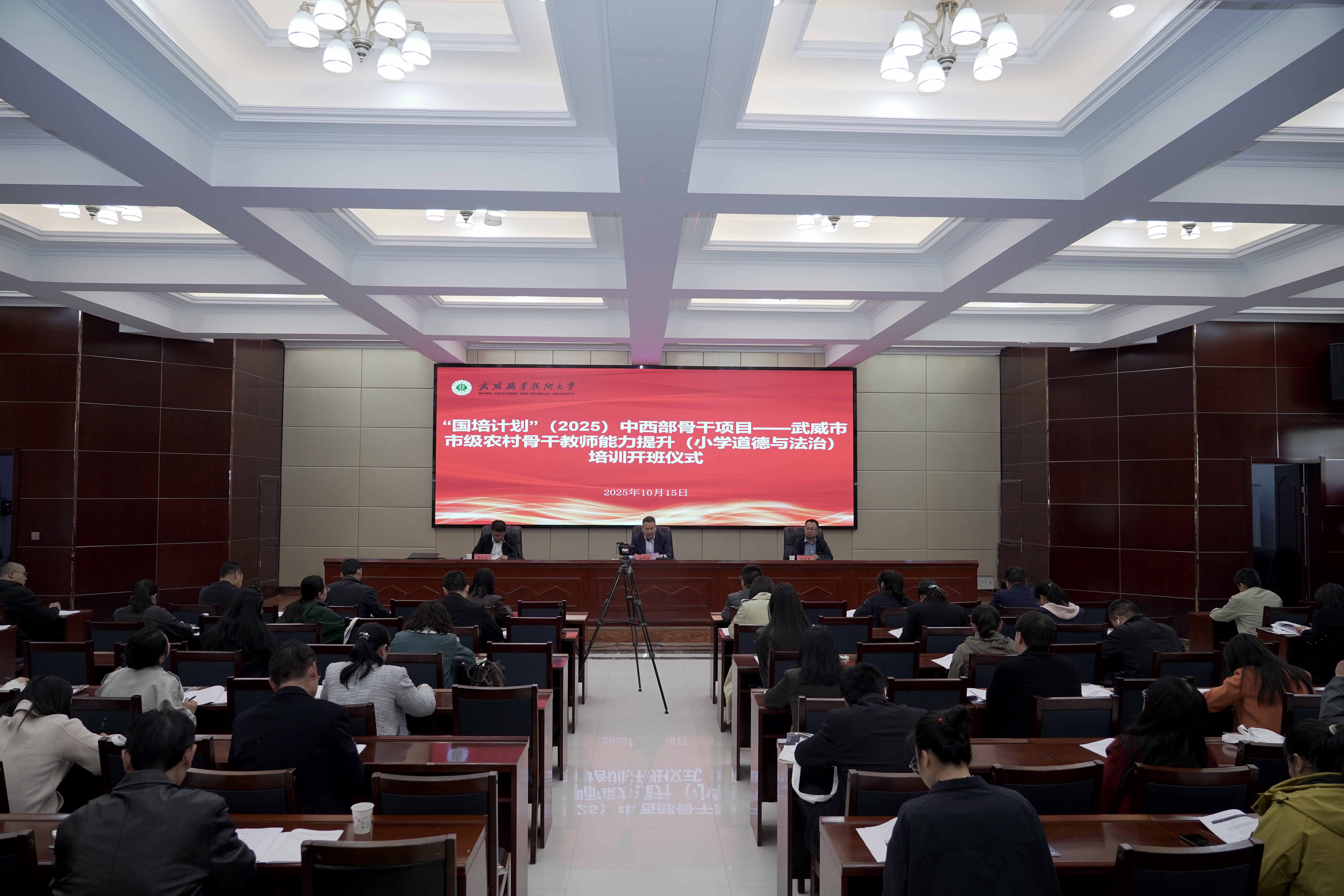10月15日,由武威市教育局主辦、武威職業(yè)技術大學承辦的“國培計劃”(2025)中西部骨干項目——武威市市級農(nóng)村骨干教師能力提升(小學道德與法治)培訓班在學校行樹樓北側(cè)報告廳正式開班。學校黨委委員、副校長伍國強出席開班儀式。培訓組織管理工作人員及60名參訓骨干教師共同參加。開班儀式由學校國際合作交流處副處長蔡濟眾主持。