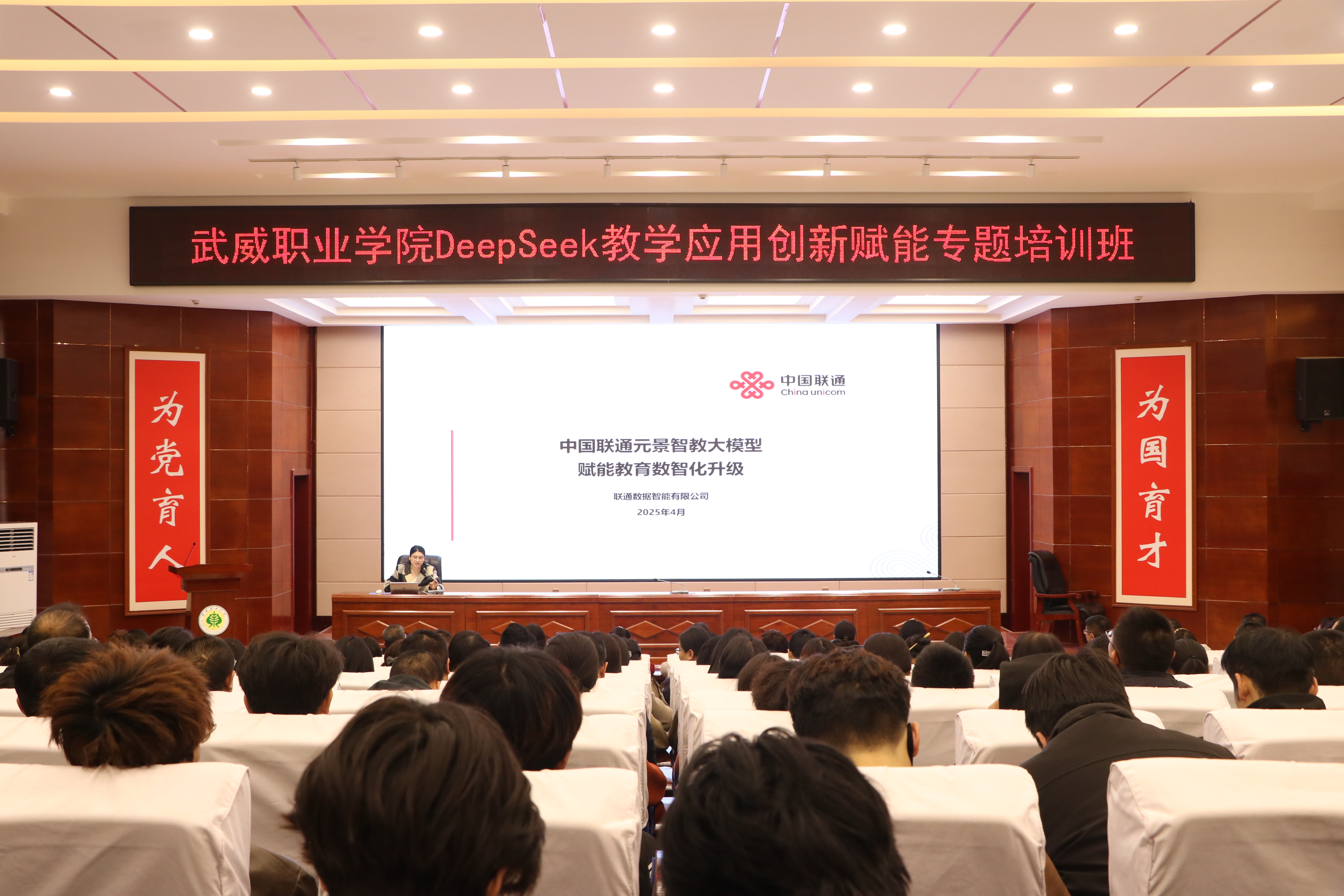 為深入探討DeepSeek技術(shù)的應(yīng)用,助力學(xué)校師生運(yùn)用AI工具進(jìn)行教學(xué)實踐、智慧課程建設(shè)與科學(xué)研究工作,為教學(xué)改革與教學(xué)創(chuàng)新實踐筑基賦能。4月3日,學(xué)校邀請聯(lián)通數(shù)據(jù)智能有限公司教育行業(yè)解決方案專家包紅梅和華為技術(shù)有限公司智算產(chǎn)業(yè)AI架構(gòu)師王鑫,舉辦了“DeepSeek教學(xué)應(yīng)用創(chuàng)新賦能”專題講座。講座由網(wǎng)絡(luò)安全與信息技術(shù)中心負(fù)責(zé)人史子新主持,學(xué)校各部門、二級學(xué)院教師代表,信息技術(shù)學(xué)院學(xué)生代表共計220人參加。