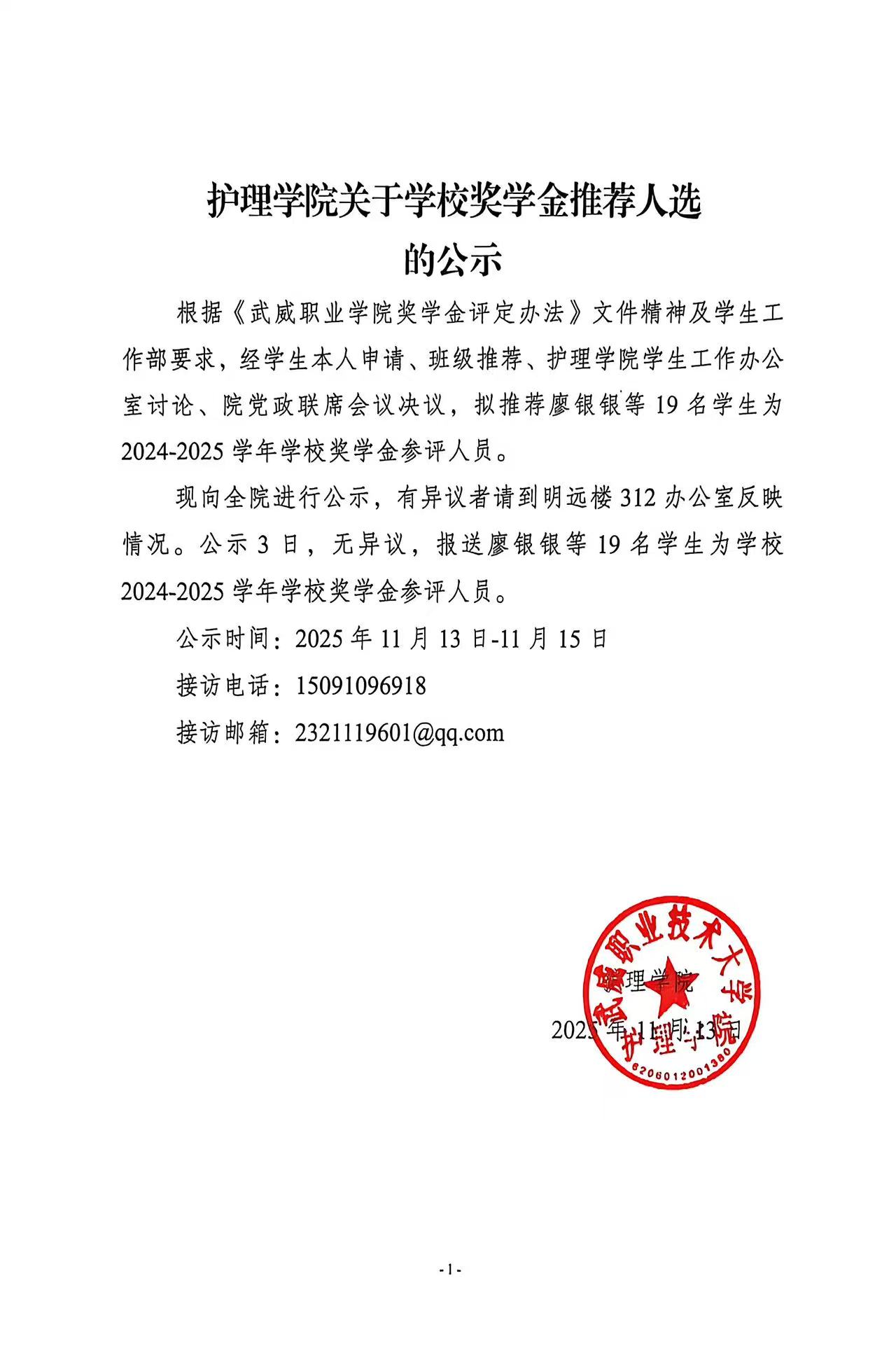 護(hù)理學(xué)院關(guān)于2025年國家助學(xué)金獲評人選的公示