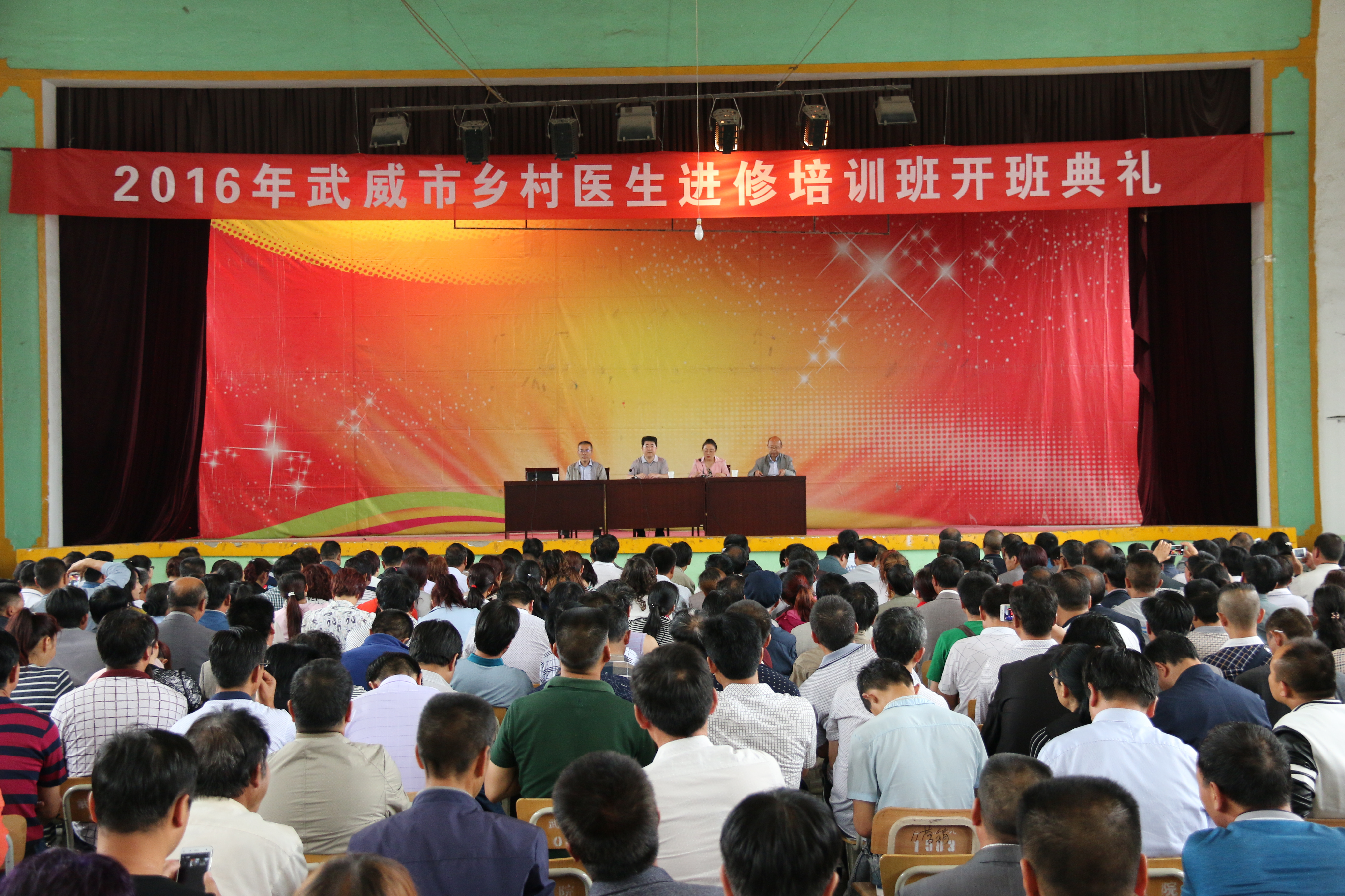 6月20日上午9:00,2016年武威市鄉(xiāng)村醫(yī)生進修培訓(xùn)班開班儀式在我院大禮堂舉行,本期培訓(xùn)的395名參訓(xùn)學(xué)員參加了開班儀式。市衛(wèi)生計生委主任王平基、武威職業(yè)學(xué)院副院長張偉鴻、市財政局社??瓶崎L余偉出席開班儀式并在主席臺就座。