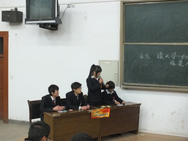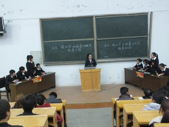 11月28日晚,我院第五屆大專(zhuān)辯論賽復(fù)賽第二場(chǎng)比賽在西階梯教室舉行。此次辯論賽,電信系作為正方以“讀大學(xué)生長(zhǎng)進(jìn)最大的是知識(shí)”為辯題,我系作為反方以“讀大學(xué)生長(zhǎng)進(jìn)最大的是人格”為辯題。雙方就此展開(kāi)了激烈的辯論。