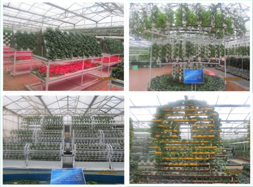 蔬菜高科技無(wú)土栽培模式展廳展示了各種無(wú)土栽培模式,主要有水培、霧培、基質(zhì)培、管道培、立柱培、吊管培、螺旋式立體栽培等。管道設(shè)施密密匝匝、高低參差、錯(cuò)落有致,葉綠、花紅、果黃,使展廳成為集各種工藝造型展示和高科技管道栽培模式于一體的薈萃園。