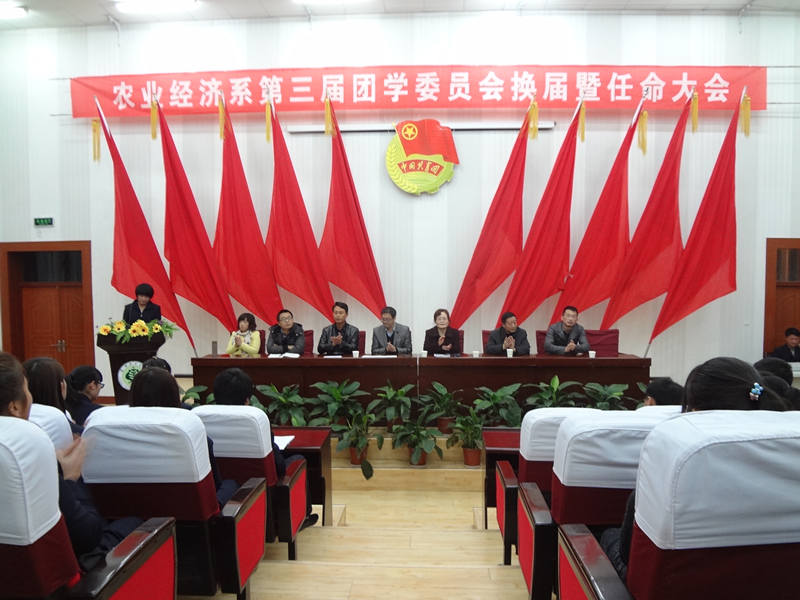 20131111,武威職業(yè)學(xué)院農(nóng)業(yè)經(jīng)濟系第三屆團學(xué)委員會改選暨任命大會在學(xué)院東階梯教室舉行。參加本次會議的有農(nóng)業(yè)經(jīng)濟系主任晏素珍、黨總支負(fù)責(zé)人蔡飛和全系教師、班主任。會議由第二屆團學(xué)委員會委員宋菲主持。