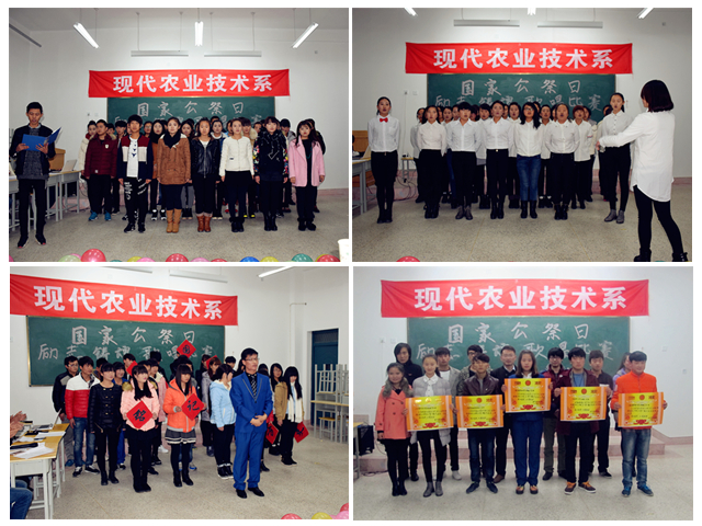 為紀念抗戰(zhàn)勝利70周年,現代農業(yè)技術系團總支積極響應院團委號召于2015年12月13日在行樹樓504舉辦以“牢記歷史,勿忘國恥”為主題的鑄魂勵志合唱比賽,系學生工作負責人蔡飛、部分青年教師及其他系部團學會主席應邀擔任本次比賽評委。