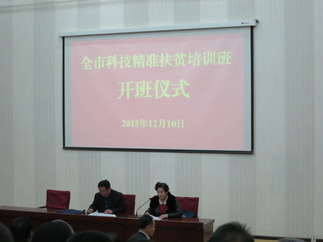 2015年全市科技精準扶貧培訓班于12月10日下午在我院舉行,開班儀式由武威市科技局局長邢立華同志主持,市政協(xié)副主席、市精準扶貧科技扶貧工作實施辦公室主任馬國榮同志出席并就如何搞好本次培訓做了重要講話,涼州區(qū)政協(xié)副主席趙永慶同志,市區(qū)科技局分管領(lǐng)導,涼州區(qū)移民村科技示范戶、種植能手、致富帶頭人和科技副鄉(xiāng)鎮(zhèn)長130人參加培訓。