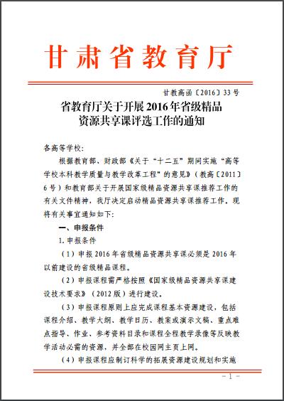 省教育廳關(guān)于開展2016年省級(jí)精品資源共享課評(píng)選工作的通知