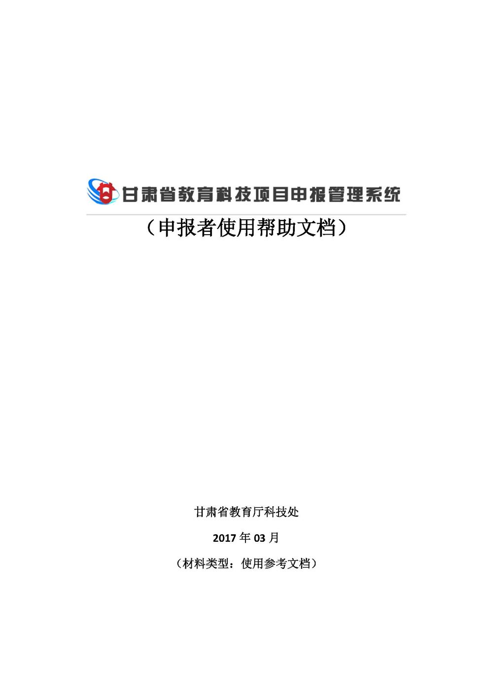 甘肅省教育廳關(guān)于申報(bào)2017年度甘肅省高等學(xué)??蒲许?xiàng)目-申報(bào)者使用文檔