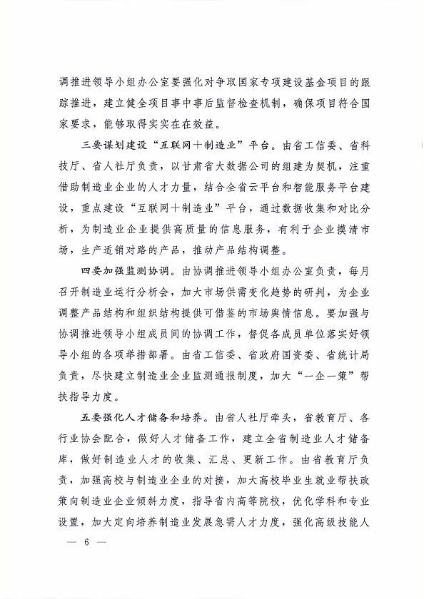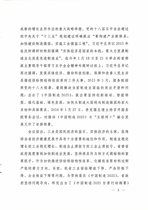 甘肅省教育廳關(guān)于轉(zhuǎn)發(fā)《中國制造 2025 甘肅行動綱要協(xié)調(diào)推進(jìn)領(lǐng)導(dǎo)小組第一次會議紀(jì)要》的通知