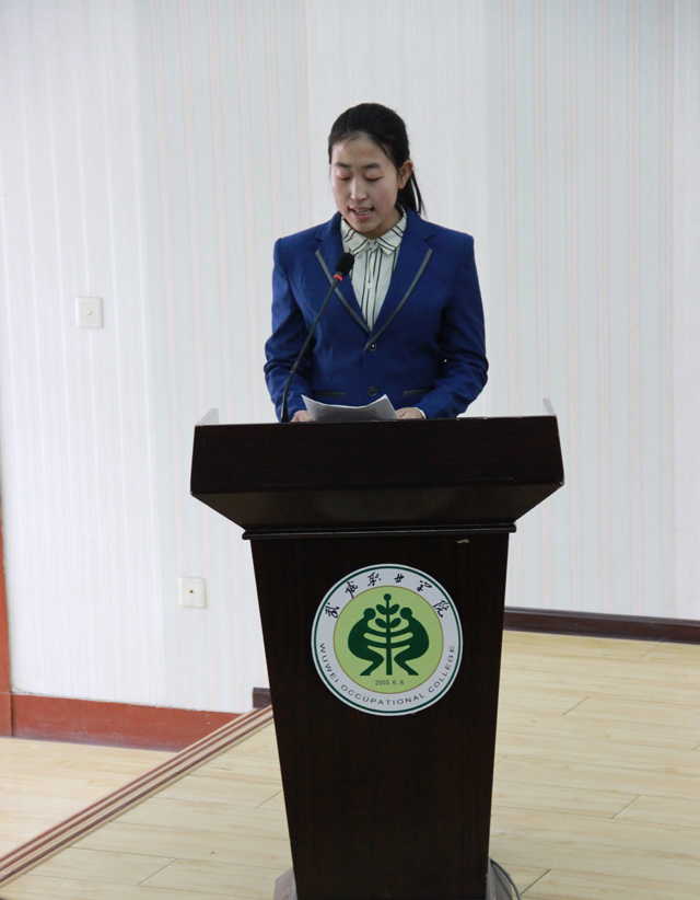 2013級王婷同學(xué)代表學(xué)生發(fā)出倡議,要胸懷大志,以崇高的理想信念提升前進(jìn)的動力;要勤奮學(xué)習(xí),以淵博的知識打好前進(jìn)的根基;要呵護(hù)心靈,以更加健全的心智創(chuàng)造更好的成才之路。