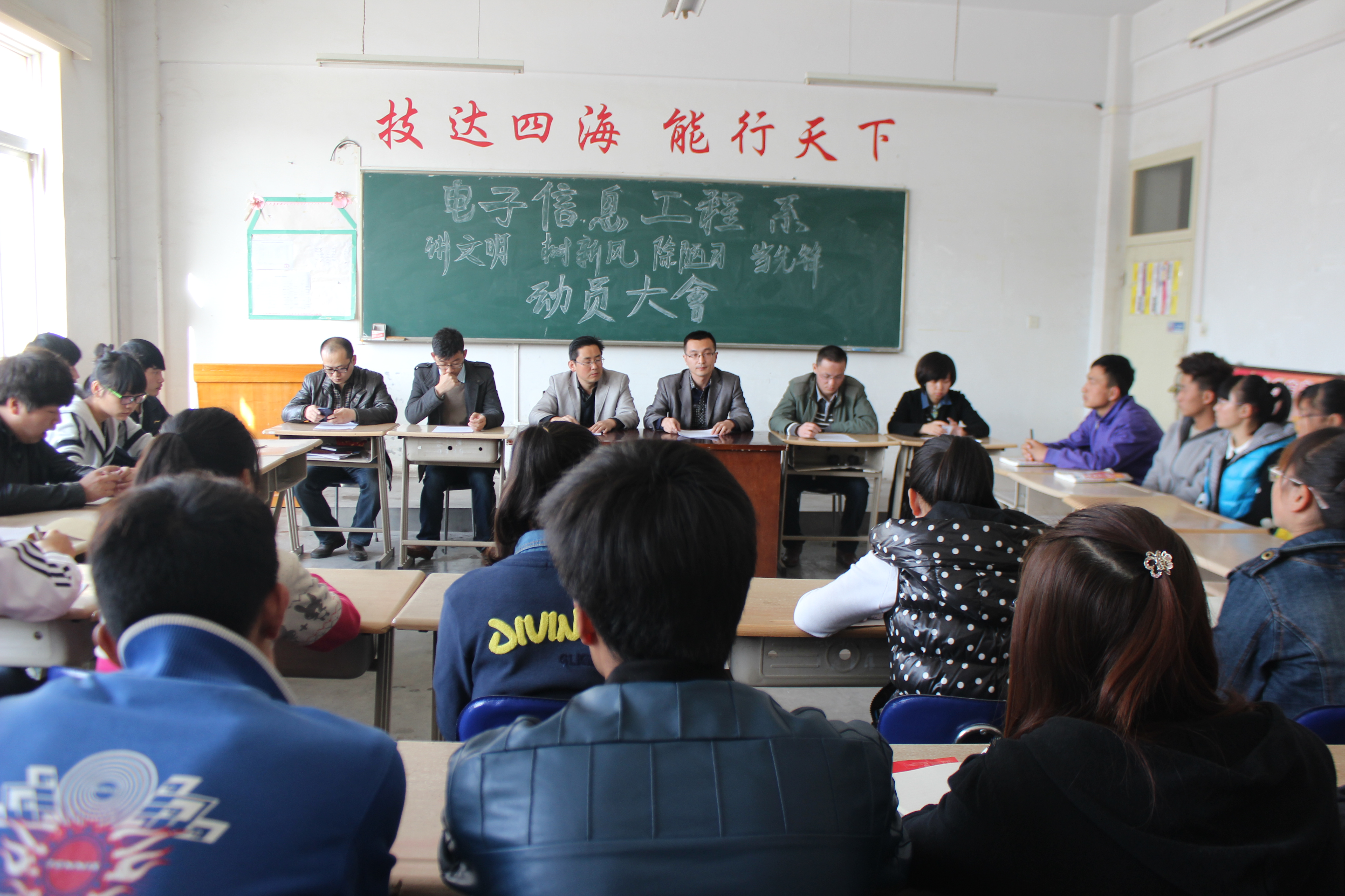 3月10日,電子信息工程系團總支組織全體學生干部在1-304教室召開以“講文明 樹新風 除陋習 當先鋒”為主題的“文明禮貌月”活動動員大會。電子信息工程系輔導員、團總支書記、全體班主任參加了會議。