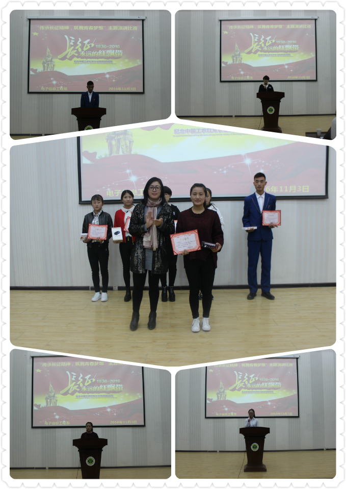 為貫徹習(xí)近平總書記在“紅軍長(zhǎng)征勝利80周年大會(huì)”上發(fā)表“不忘初心、繼續(xù)前進(jìn),走好新的長(zhǎng)征路”的重要講話,激發(fā)師生弘揚(yáng)偉大的長(zhǎng)征精神,電子信息工程系于11月3日在正德廳舉辦了 “傳承長(zhǎng)征精神,筑我青春夢(mèng)想”主題演講比賽。電子信息工程系主任李亞梅及各位班主任擔(dān)任本次比賽評(píng)委,2016級(jí)全體學(xué)生觀看了比賽。