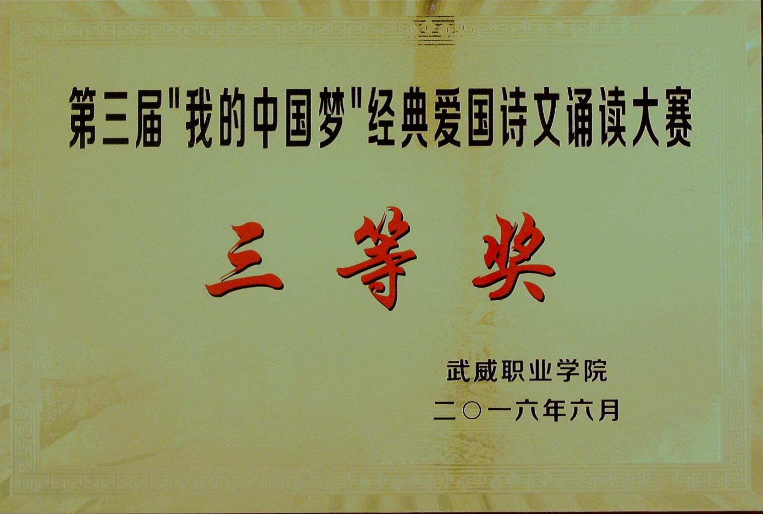 ”我的中國(guó)“夢(mèng)經(jīng)典愛(ài)國(guó)詩(shī)文誦讀大賽二等獎(jiǎng)