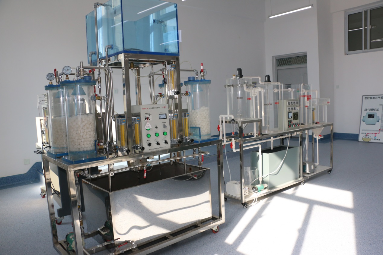 實訓功能:本實訓室擁有生物滴濾池實驗裝置、完全混合式活性污泥法實驗裝置、沼氣發(fā)酵罐(四樓樓頂)、A20法城市污水處理模擬設備共9套。主要服務課程為《農業(yè)微生物》、《沼氣生產(chǎn)利用技術》、《生物質能利用技術》、《農業(yè)環(huán)境監(jiān)測技術》。