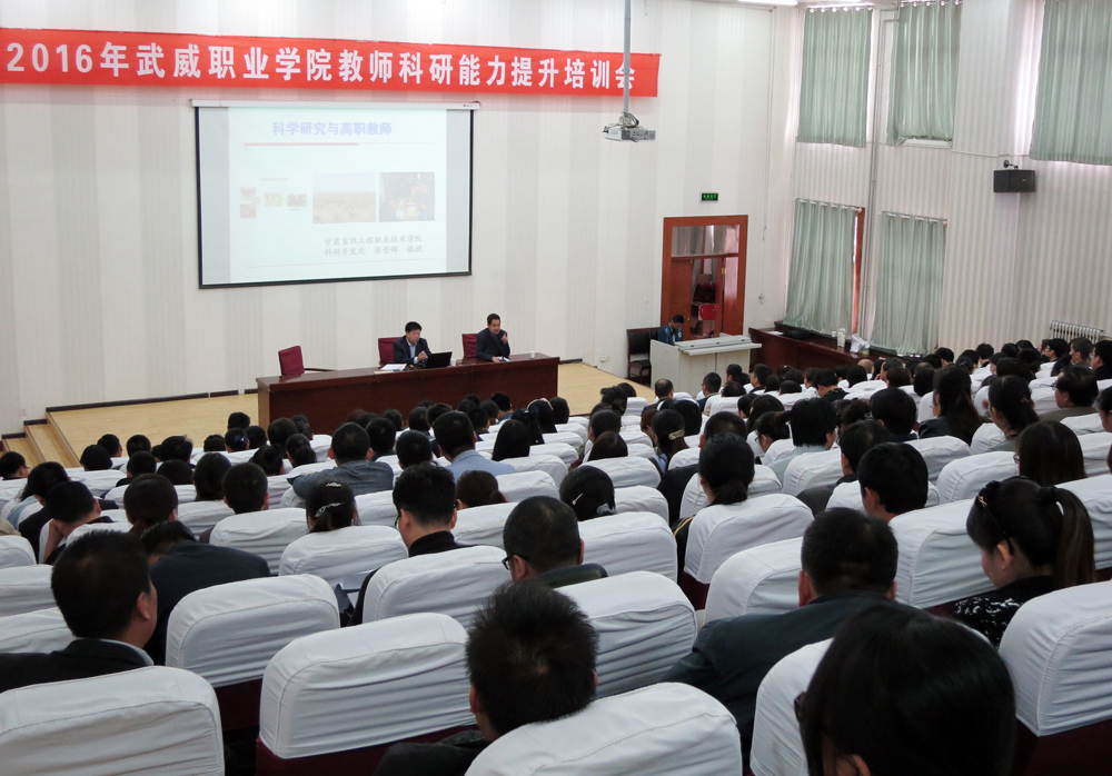 為進(jìn)一步推進(jìn)我院科研工作,營造科研氛圍,提高教師科研能力,滿足教師對科研工作的需求,4月20日下午,學(xué)院科研處特邀甘肅畜牧工程職業(yè)技術(shù)學(xué)院教授、科研開發(fā)處處長張登輝在正德廳作了題為“科學(xué)研究與高職教師”為主題的培訓(xùn)講座。學(xué)院副院長翟存祥主持會(huì)議,全院260多名教師參加了此次培訓(xùn)。