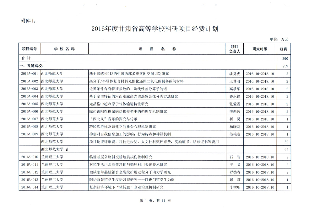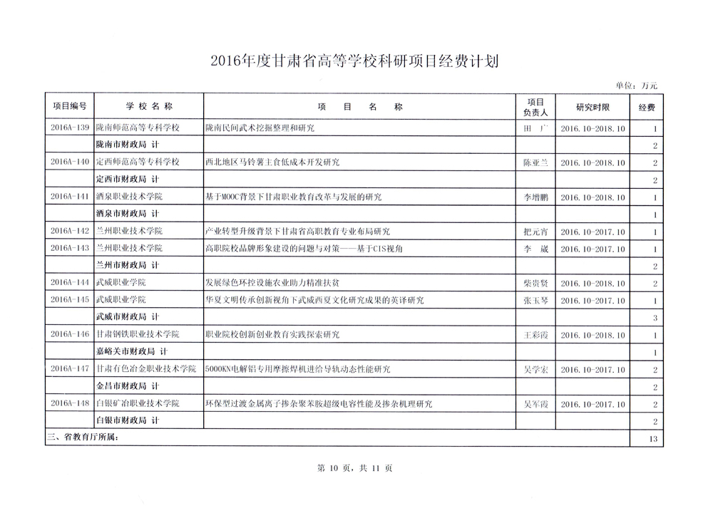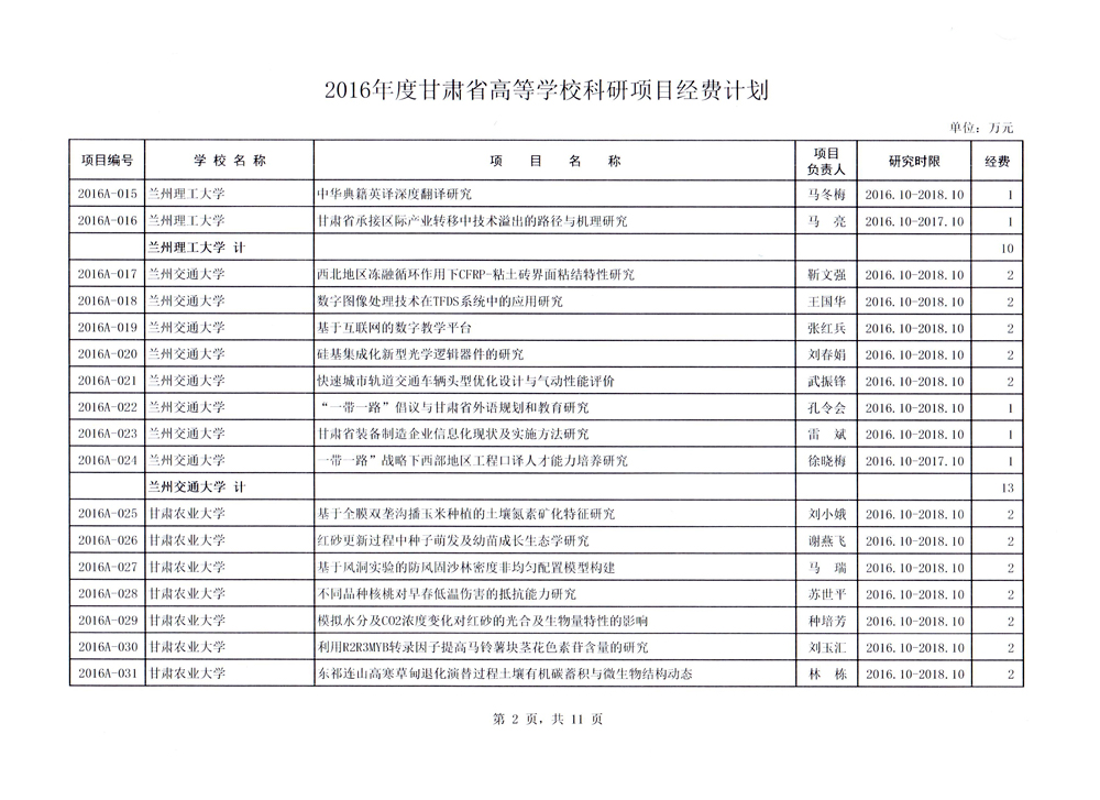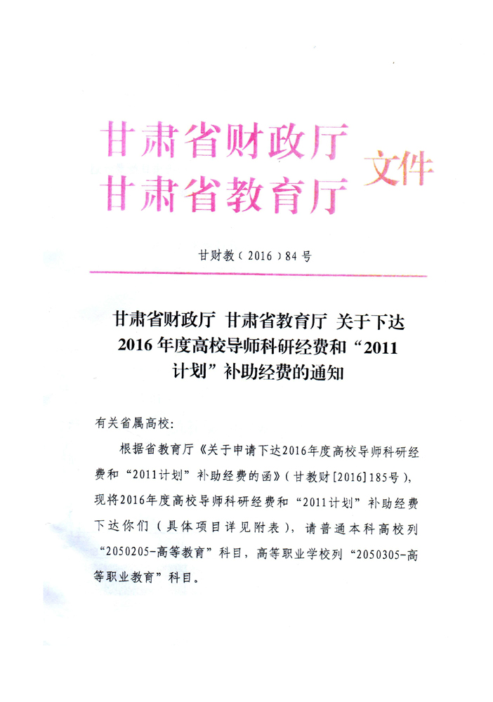 甘肅省教育廳關(guān)于下達(dá)2016年度甘肅省高等學(xué)校科研項目自籌經(jīng)費項目的通知