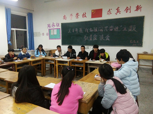 通過組織各班團干部開展 “我與祖國共奮進”主題座談會,讓團干部們對歷史有了深刻的了解,也讓同學(xué)們在這次座談會中深刻領(lǐng)悟到身為中華兒女要勿忘恥辱,為實現(xiàn)中華民族偉大復(fù)興的中國夢而勤奮學(xué)習(xí)。同時,各班團支部以形式多樣的主題團會,表達出為了實現(xiàn)“中國夢”,讓屈辱的歷史不再重演,將要萬分珍惜今天這來之不易的和平生活,努力學(xué)習(xí),不斷進取。