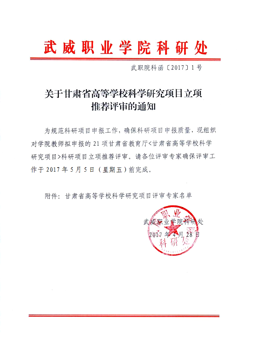 關(guān)于甘肅省高等學(xué)??茖W(xué)研究項(xiàng)目立項(xiàng)推薦評(píng)審的通知