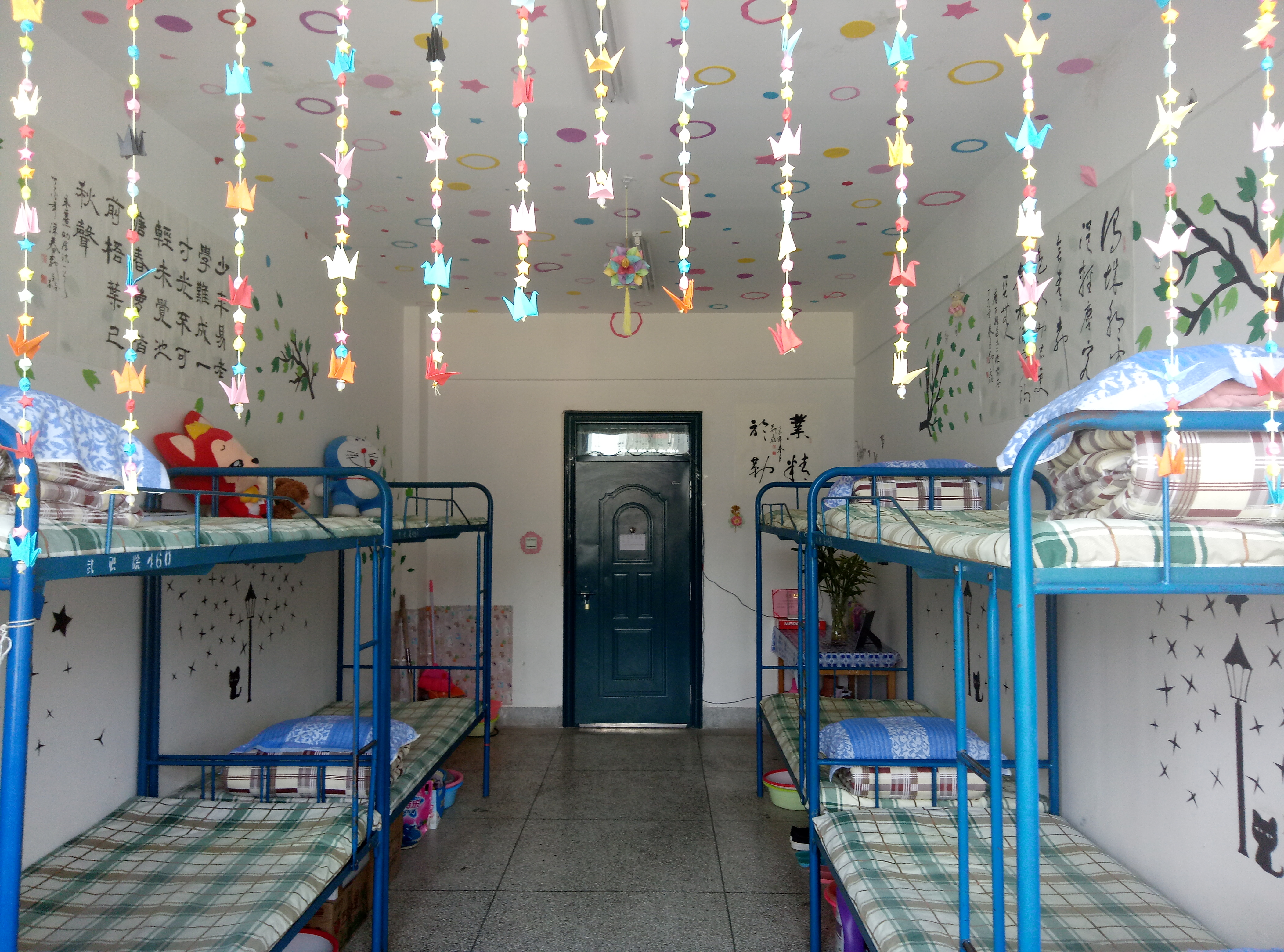 各宿舍衛(wèi)生狀況普遍較好,基本做到了勤開窗,勤掃除,被褥疊放整齊,地面、桌面干凈整潔,用電合理、安全。同學們大膽創(chuàng)新利用剪紙、剪花、圖貼等手工作品將宿舍裝扮得優(yōu)雅而漂亮。也有同學用書法、繪畫作品裝扮宿舍,為宿舍增添了藝術(shù)的氣息。