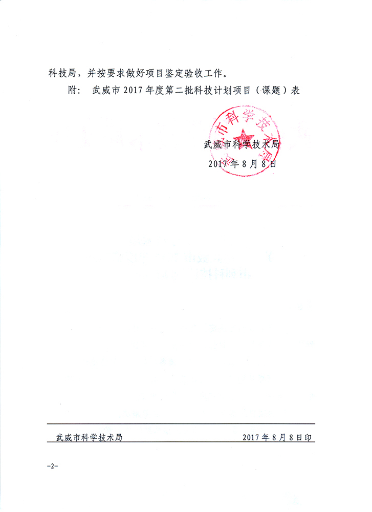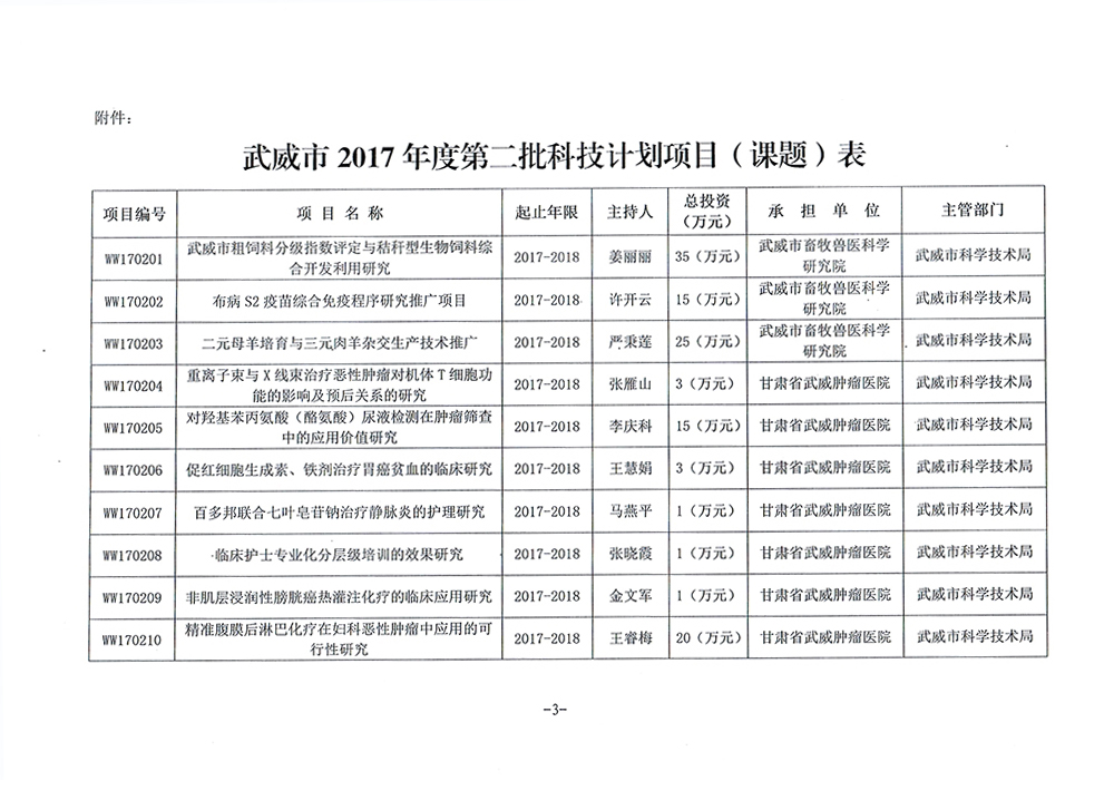 轉(zhuǎn)發(fā)武威市科學(xué)技術(shù)局關(guān)于下達(dá)武威市2017年度第二批市列科技計劃項(xiàng)目的通知