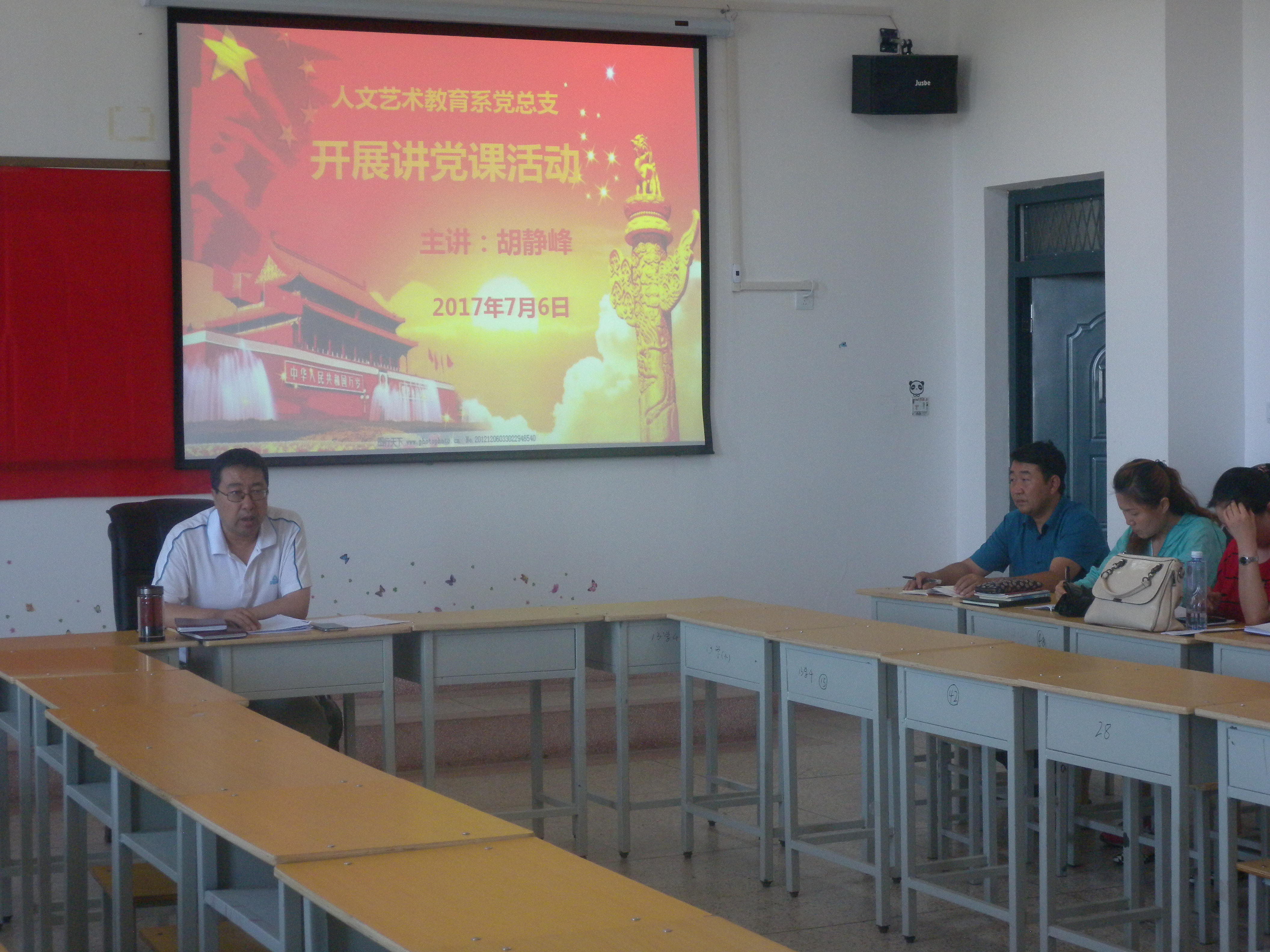 為進一步深入推進“兩學一做”學習教育常態(tài)化制度化,根據(jù)學院文件精神, 7月6日,人文藝術教育系黨總支在勵勤樓209黨員活動室開展“書記講黨課”活動,全體黨員教師參加了此次活動。