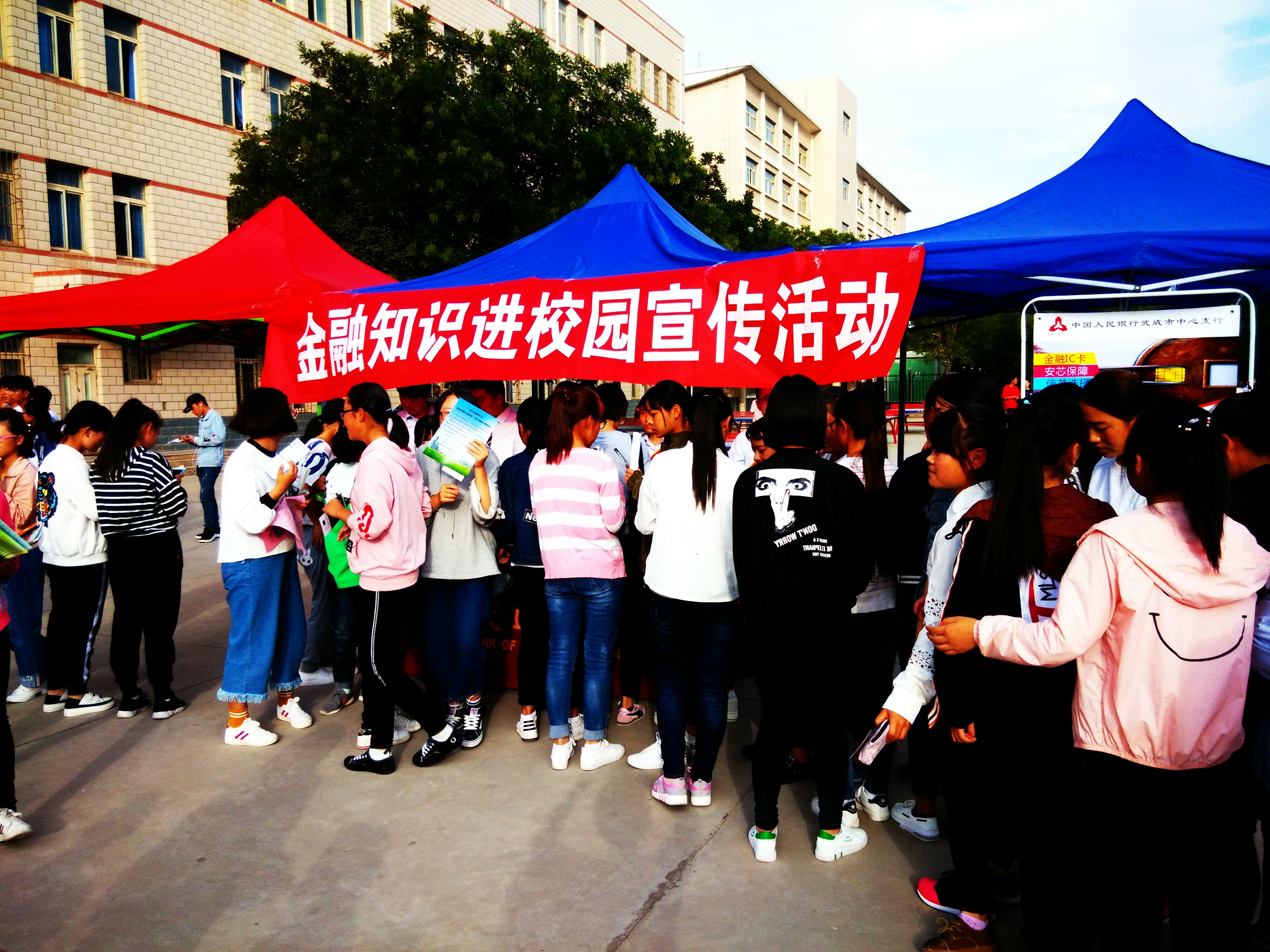 為幫助和引導(dǎo)大學(xué)生群體牢固樹(shù)立金融安全意識(shí),9月21日下午,學(xué)生工作處邀請(qǐng)中國(guó)人民銀行武威分行、武威農(nóng)商銀行、交通銀行武威分行在學(xué)院尚德樓南操場(chǎng)開(kāi)展了“送金融知識(shí)進(jìn)校園”宣傳活動(dòng),全院學(xué)生積極響應(yīng)號(hào)召,有1000余人參加了此次活動(dòng)。