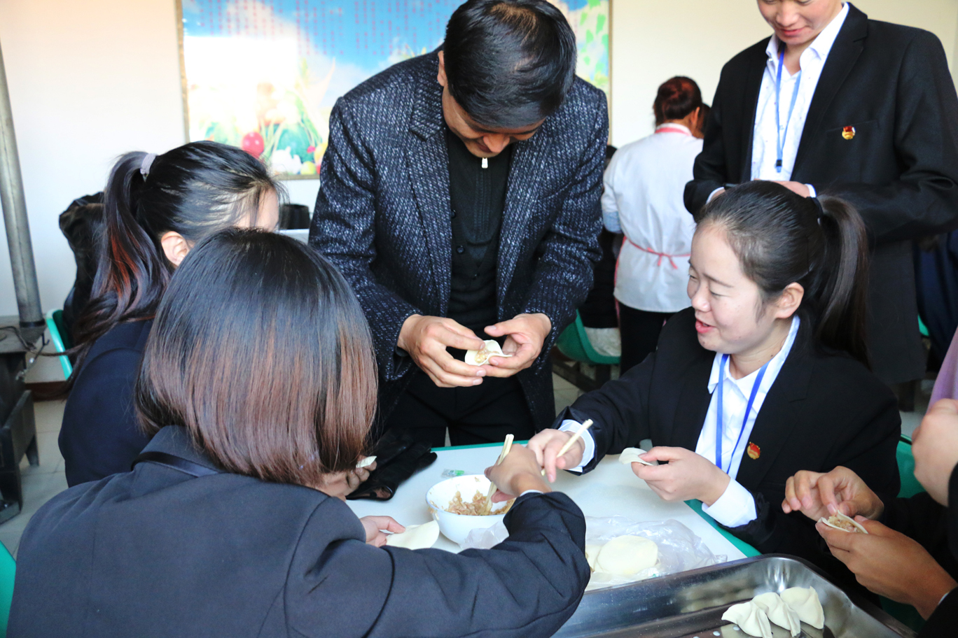 上午八點半,醫(yī)學技術學院各位黨員、入黨積極分子、團學干部、師生代表在廚房為老人包餃子,并整理被褥;康復治療專業(yè)教師黨員高萬飛為老人講解“如何健康養(yǎng)生”;系團總支為老人們送上毛巾、牙膏、香皂等日常生活用品;愛牙協(xié)會的志愿者為老人,進行牙齒檢查,講解如何愛護牙齒;中醫(yī)養(yǎng)生協(xié)會的志愿者為老人們測血壓,演示常用的按摩方法。中午時分,老人們吃著熱氣騰騰的餃子,看著全系師生代表為老人們準備的精彩節(jié)目,臉上洋溢著幸福的笑容。