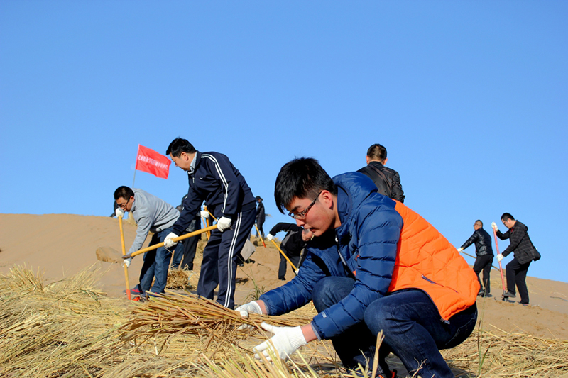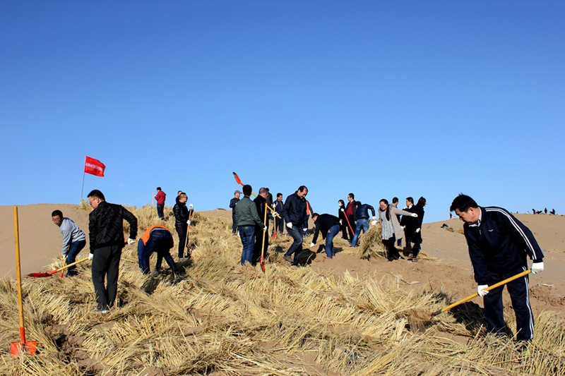 直屬附屬醫(yī)院組織干部職工赴八十里大沙參加義務壓沙治沙勞動