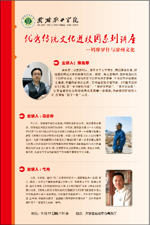 武威職業(yè)學院優(yōu)秀傳統(tǒng)文化進校園系列講座今晚開講